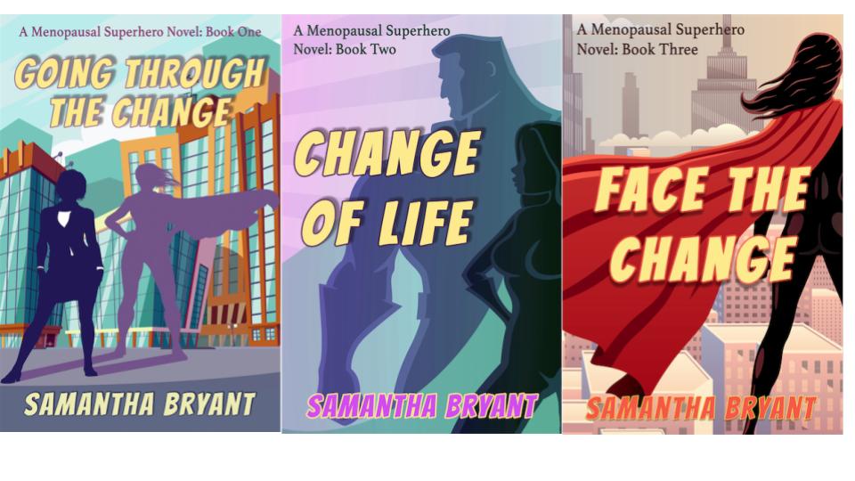 So tomorrow is a HUGE day in my writing life. It's the day my Menopausal Superheroes novels are re-released. They get ANOTHER book birthday. I'm so happy (and relieved) to be able to make this announcement so soon after I found it necessary to ask for my rights back from my previous publisher. (details here)