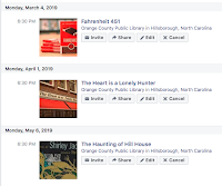 Upcoming in the next few months, we're tackling Fahrenheit 451, The Heart is a Lonely Hunter, The Haunting of Hill House, The Master and Margarita, The Postman Always Rings Twice, and In Cold Blood.