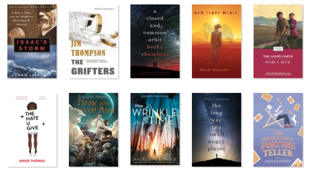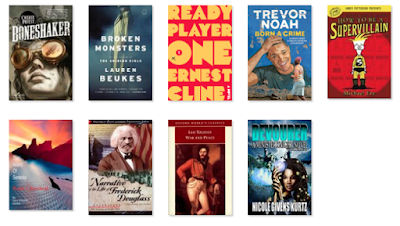 Goodreads says I've read 59 as of today (I'm writing this in the first half of December), but it's looks like they are counting Kill the Farm Boy, which was a DNF (did not finish) for me (it felt like it was trying too hard to me, and I didn't find it funny as I had hoped), so we'll say 58. I've got one in progress I'll finish soon, and two more I expect to finish in December. So, I'll probably finish my year at 61 books read. I set my goal at 52, one per week, and usually can exceed it, without having to pile up on short reads at the last minute, thanks to the magic of audiobooks that let me read while I handle the mindless minutiae of domestic life.