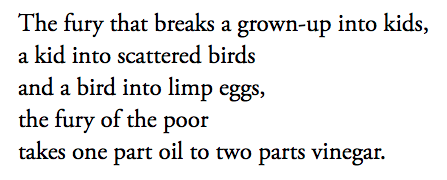 The Fury that Breaks with that lovely structure, where the object one line becomes the subject of the next.