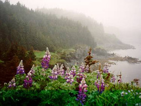 It's green and lush, but never hot. It rains a lot, but I don't mind that. It was my first time living by the sea, and I *loved* it. Walking beaches and forests, looking for beach glass, tide-pooling, sitting clifftop watching puffins, and regularly seeing bears, sea lions, and bald eagles . . . it was heaven on earth. And Ft. Abercrombie State Park, with its cliffs, flowers, wildlife, and sea was my favorite part.