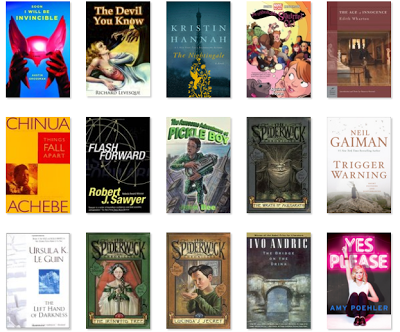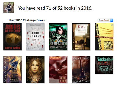 Each year, I do a reading challenge on Goodreads. I usually set a goal of 52 books a year, one per week and most recent years I haven't been able to make it. There have been times in my life when I've read more than that, but here in the middle of what my mom calls "the busy years" (careers, kids, house, etc.), one a week is more than I can do sometimes. Reading is a sanity saver for me, a solace, a balm, inspiration, escape. When I don't get enough story time, I'm a serious cranky pants.
