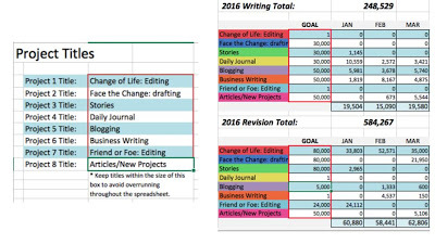 This year, I began using Jamie Raintree's Writing and Revision Tracker. It doesn't award me points, but it does let me categorize my writing, set monthly goals, and track both writing and revision (on Magic Spreadsheet, I play math games to credit myself with revision time, counting in pomodoros or giving myself 10% of wordcount edited). It's been a really good tool for me, letting me make sure that, not only am I writing, but I am writing the right things, in order to finish in time for deadlines. Now that I have multiple irons in the fire all the time, staying on track means more than just writing. It means keeping focus and not getting distracted by side projects while the main one languishes.