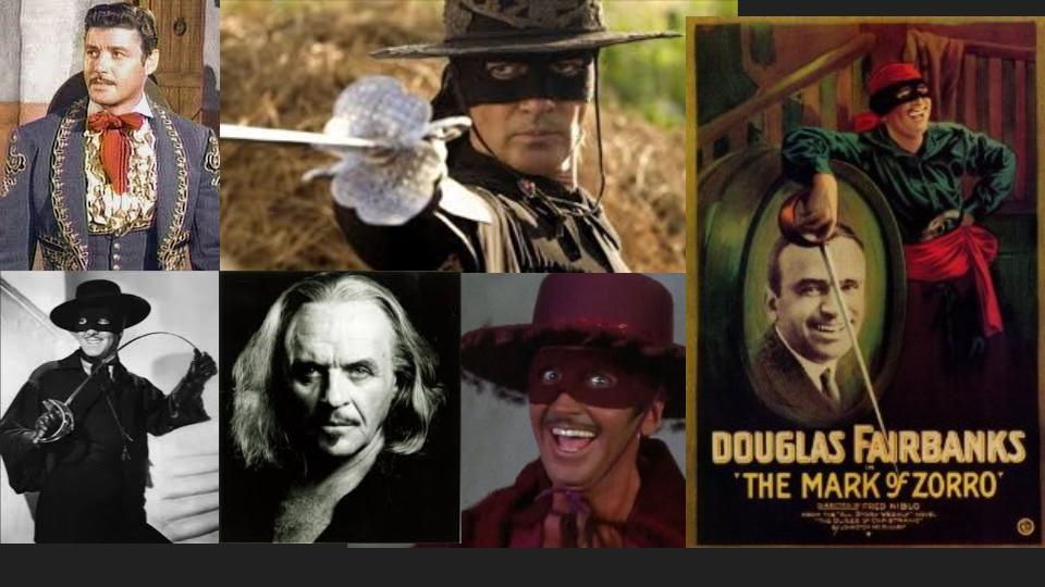 Zorro, or Don Diego de la Vega, has been around for a while. The Mexican Robin Hood was created in 1919 by Johnston McCulley and has been swashbuckling around books, comics, stage and screen (both large and small) every since. He's a man of many faces, and though he's a Mexican hero, he's seldom been played by a Hispanic person (at least in English language renditions).
