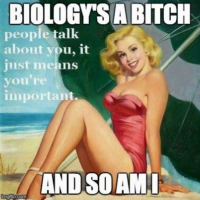 Biology, as they say, is a bitch. Especially for women. So many of us feel as though we lose years to the caprices of deep-seated urges and desires that there is no logical support for. We cry when we don't want to. We feel unreasonably angry. We fight cravings for things that are bad for us. What woman hasn't felt betrayed by her own body at what time or another?