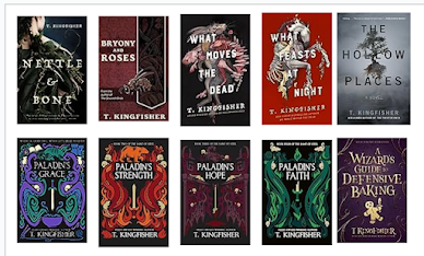 I've been binging books by T. Kingfisher (aka Ursula Vernon). In fact, I'm reading The Hollow Places by her right now, as I write this, as an audiobook. I've read several of her darker books and her Paladin romance series as well as her humorous fantasy A Wizard's Guide to Defensive Magic. She write quirky interesting characters, and intermixes a kind heartedness with an appreciation for the weird and creepy and I'm really loving that vibe right now.