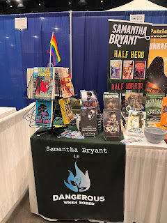 So, there you go. My best advice is to make as easy as possible for the potential reader to ascertain what kinds of books you're selling through well chosen display items and swag.