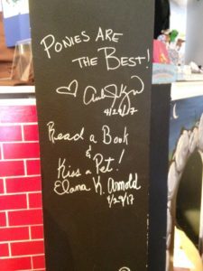 Once Upon a Storybook in Tustin has reading nooks, a mouse door, and a wall of fame for authors to sign. I saw lots of my fav books on the shelves including VOLCANO RISING, THE MUSIC OF LIFE, THE SOMEDAY BIRDS, and RAMBLER STEALS HOME.