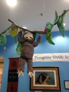 We did a school visit at a lovely school in Davis, California, called The Peregrine School. Fun fact: The Saw Whet School in Elana’s book, A BOY CALLED BAT, was based on Peregrine. The kids were great and so was the paper mache sloth in the entry way!