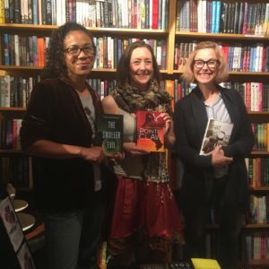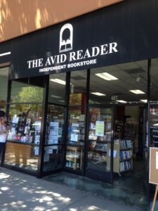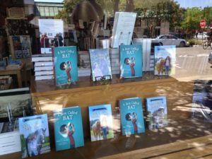 Avid Reader in Davis did an amazing window display for our middle grade event, which was attended by a very enthusiastic young girl and her parents. (Yeah, just one! Sometimes that’s how it goes.) Elana and I thought she was the bomb!