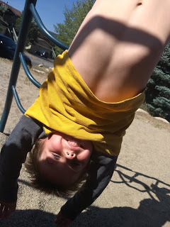 7. Hang upside down. This was my favorite and yielded lots of laughs. My older son loves hanging upside down and my younger one decided to drop to his hands and flip over. This led to my older son wanting to try the trick and about 20 minutes of hanging and flipping and laughing.
