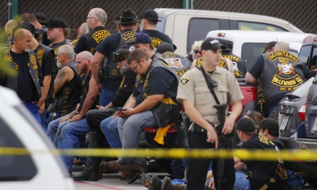 "The Bikers were claiming they were innocent victims of a police genocide. However, the evidence paints a different picture. The Bandidos and the Cossacks had a history of violence. The Bandidos are rivals of the Hells Angels and claim ownership of Texas. The Cossacks are a puppets club of the Hells Angels. A fight broke out, someone was stabbed. The fight went into the parking lot where guns came out and people were shot. The police opened fire. According to the New York Times, eight of the nine victims were members of the Cossacks. One was with the Bandidos. So it's still about the Hells Angels attempt to take over the drug trade.