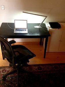 Here is a photo of where I work. Every morning I sit in that chair before that computer and write for four hours. I try to keep my workspace tidy. I’m not one of those writers needing a bunch of props and prompts hanging around. I don’t need little aphorisms pinned to my wall to remind me of what I am up to. A cluttered desk is a cluttered mind, I tell myself, and a cluttered mind is death to any writer who wants to write clearly. At least that’s how I feel about it. I’m sure there are plenty
