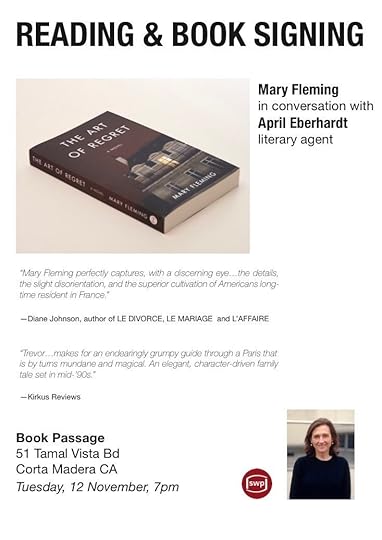 Though still recovering, from a 10-day whirlwind book tour of the US for my novel The Art of Regret. Fortunately not one of the nightmare scenarios I imagined in my last blog came true. Except for an error in reading a bus timetable that did not affect anything but the state of my nerves, travel went smoothly. Each event was well-enough attended and I didn’t embarrass myself by freezing up mid-sentence. Hearty thanks to all of you who came - and bought books!