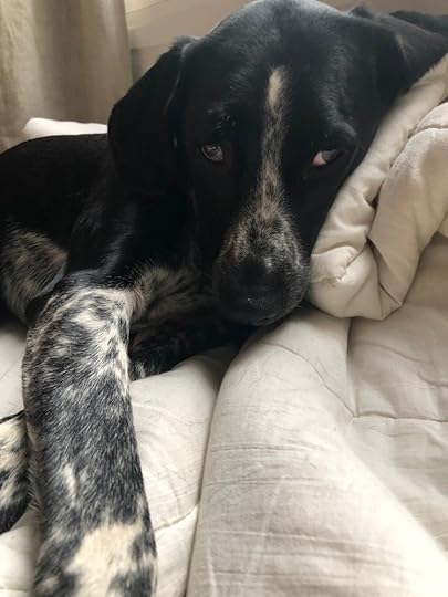 Still a princess. I don't know where this Franco-German dog got such a taste for royal ways but she requires comfortable bedding wherever she settles.