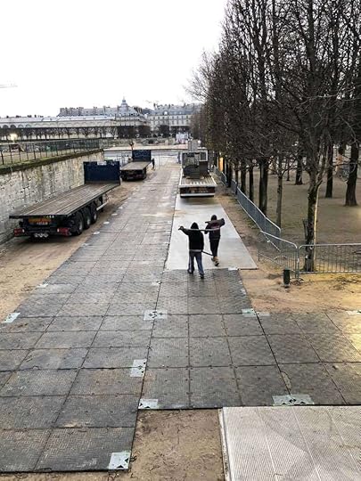 The process lasts some weeks, the time to assemble the structures, host the fashion shows and disassemble. It ruins the views, makes a lot of noise and generally disrupts a quiet morning walk but, as Stéphane, Nathaële and I say while the engines rumble and the hammers clang on metal, it creates jobs and with France's unemployment rate still hovering around 9%, how can you complain?