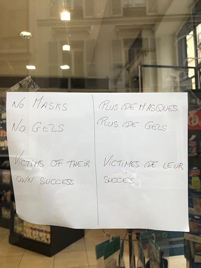 Four days into confinement, I feel sheepishly fortunate down here at the end of the lane where we are short on germs, long on space. No need to fill out a form when Tasha and I take our daily constitutional - we don’t encounter another soul. In a way my days haven't much changed. I write, play the piano, exercise, read. When we need food, I drive into the town of Bellême, same as always, except I'm holding my form in my gloved hand and keeping my distance from the other few souls on the same mission. The shops have helped by sticking tape lines 1.5 metres apart on the floor. Back home I wash my hands, get out the bleach.