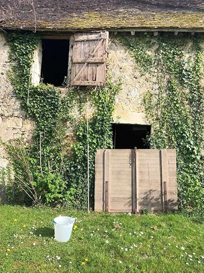 While I fretted about how the swallows would react to our suggestion that they downsize from a château to a shack, he blocked the bottom of the stable door to prevent other animals from entering. He cut away the rosebush and vines that had grown over the attic door and opened it up, tied it to the wall. To help their nest-building he made some mud nearby and put out a bucket of water. Fortunately there was already straw in the stable.