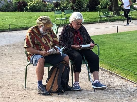 I happily rediscover my Paris routine, most notably my morning walks in the Tuileries with Tasha, even if the rigid geometry, after months in let-it-be nature places like Berlin and the Perche, can come as a shock to the canine...
