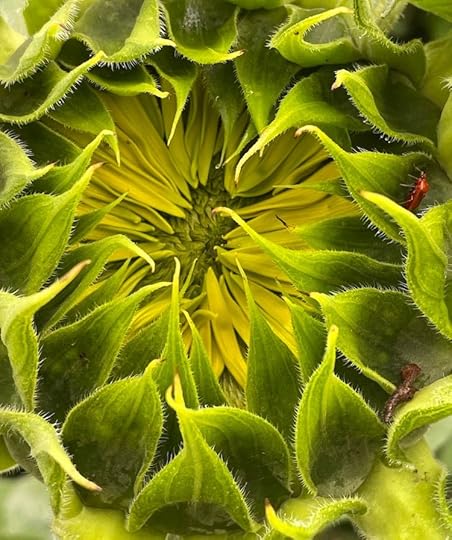 Sunflower CentralLast week the wheat was harvested in the fields just beyond our property. It struck me this morning that I have been more fascinated than usual by the uncollected bales of hay. Balled up, tightly wound and spatially isolated, they are an apt backdrop for this second Covid summer.