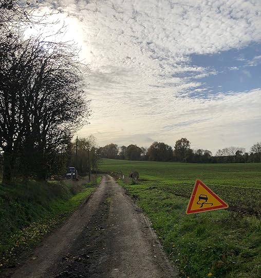 Not so by mid-December. During our two-week absence, much more earth had been overturned and moved, both to finish levelling out back and to replace and re-position the septic tank. Plus - key element here - it had rained and rained, and all that clay soil had turned into mud dense enough to rival what gave all those poor soldiers trench foot in 1916. In our first tour of the garden, I sunk thigh-deep into the stuff, perhaps my just deserts for having sniggered at that skid sign in finer weather.