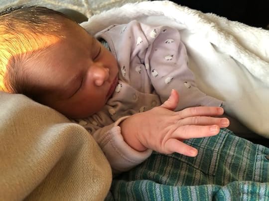 In the early morning light, with Mira still curled in my arms, grand-parent-hood seems a very privileged vantage point. Though exhausted now myself, Georgina will wake up when Mira does and take over. After I've tidied up and done some shopping for them, I'll go back and rest, undisturbed. Tomorrow, refreshed, I will notice the little changes that even 24 hours bring in the life of a newborn.