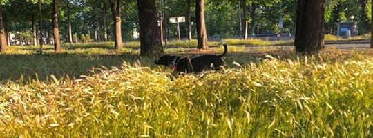 There has been some deviation from the rules - a few mad chases after hares, another after a fox - but these animals quickly retreat into their holes and she loses interest, returns to the straight and narrow. Fortunately her preferred prey deer, who just keep running, have been scarce recently. Perhaps they are sticking to the woods to care for their young or are deterred from venturing into the fields because the wheat, barley and rapeseed are high now and so tightly planted even the voles (those that have survived the pesticides) must be elbowing their way around.
