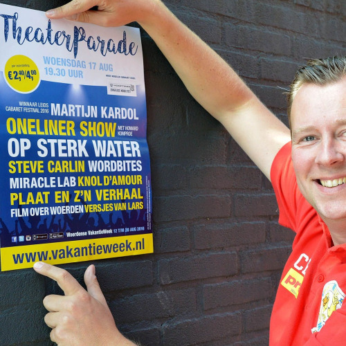 Vanavond van 19.30 tot 22.30 ben ik in Woerden bij de Theaterparade. Voor meer info: http://www.vakantieweek.nl Wie die man op rechts is weet ik ook niet, maar hij lijkt me hartstikke gezellig.