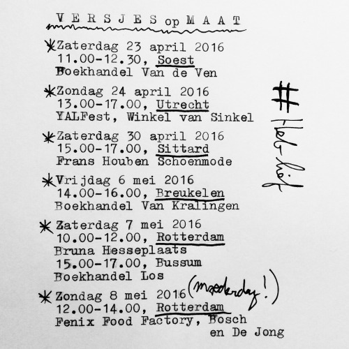 Een vol versjes op maat weekend. Morgen als eerste van 14.00 tot 16.00 in Breukelen! Dan zaterdag in Rotterdam en Bussum. En ZONDAG 8 MEI (let niet op dat er zaterdag staat, het is zondag) wederom in Rotterdam. Zie jullie daar hopelijk voor versjes voor je moeder (of iemand anders, of jezelf) en boekjes om te signeren. #Heblief! #versjesvanLars