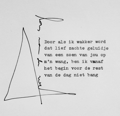 Deze komt in het in februari te verschijnen nieuwe versjesboekje #HebLief. Ik schreef ’m ooit tijdens een versjes-op-maat-sessie voor Sarah. Ze vertelde me dat ze niet wist welke kant het met haar leven op moest. Iets wat ik gek genoeg wel vaker hoor tijdens die sessies. Ik hoop dat Sarah er inmiddels achter is gekomen. In het nieuwe boekje, waarin 121 versjes komen te staan, zijn er een stuk of 20 voortgekomen uit een versjes-op-maat sessie. Is dat niet leuk? Vind ik wel.