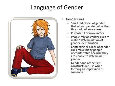 The slide below depicts the various factors that influence the gender cues we send to other people.