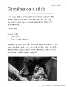 The Bland Food Cookbook also brings back some of the most popular recipes from The Eocene Diet, such as the perennial favorite “termites on a stick”.