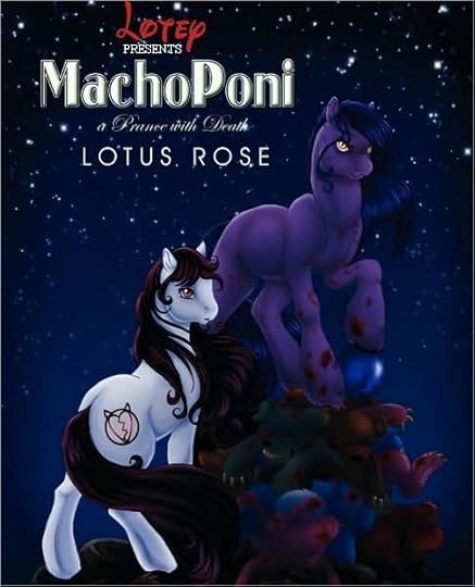 So, today I made a slight change to the cover of my MachoPoni book. As I write this, there is now some red lettering at top. If you don't see it, then I must have changed it back (or been forced to.) I hope I don't get sued by a certain cartoon-manufacturing entity.