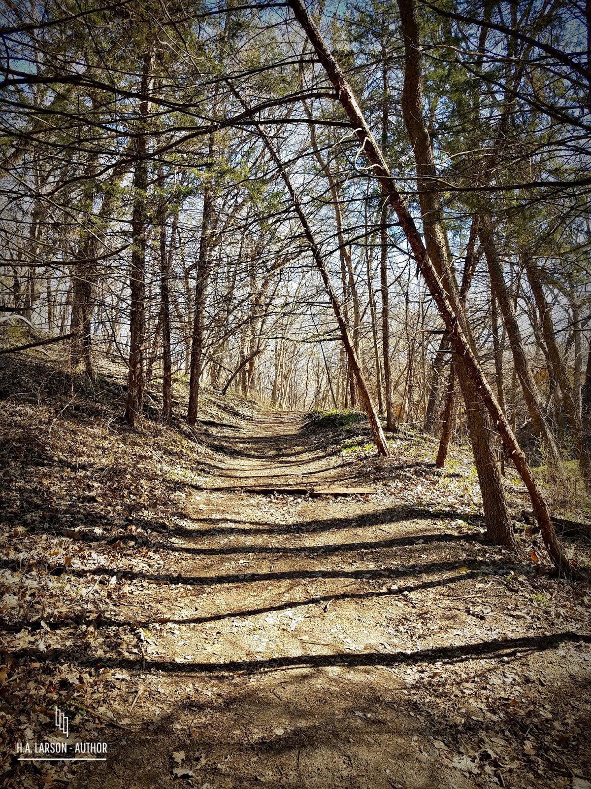 I took this the same day on the same trail. As you can see, it was still Winter, and the Sun shone through the clouds in such a beautiful way. I love this picture.