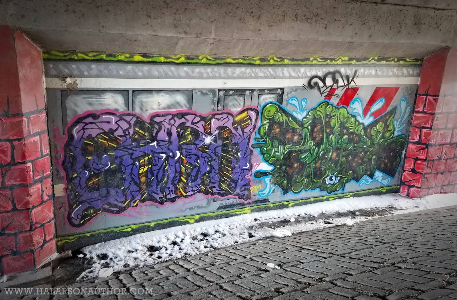 Where the trail runs under bridges, you can often find graffiti, such as this one.