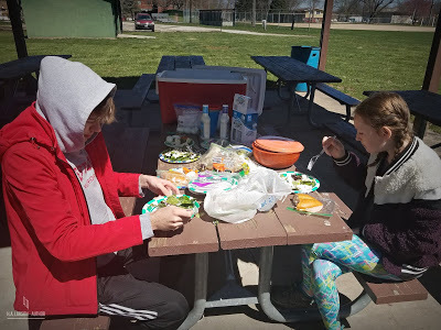Picnic time during our Loess Hills Adventure.The day after the Schramm hike, I took the kids on one of our Loess Hills Adventures. I've talked about them extensively in the past on this blog, but, basically - and since we live next to the Loess Hills - it consists of picking three or four spots in the Loess Hills to visit, packing a lunch, and hitting the road. The spots will consist of a museum/visitor's center, a picnic spot, a hiking spot, and will end with a winery. It's a great way to spend a day with my kids.