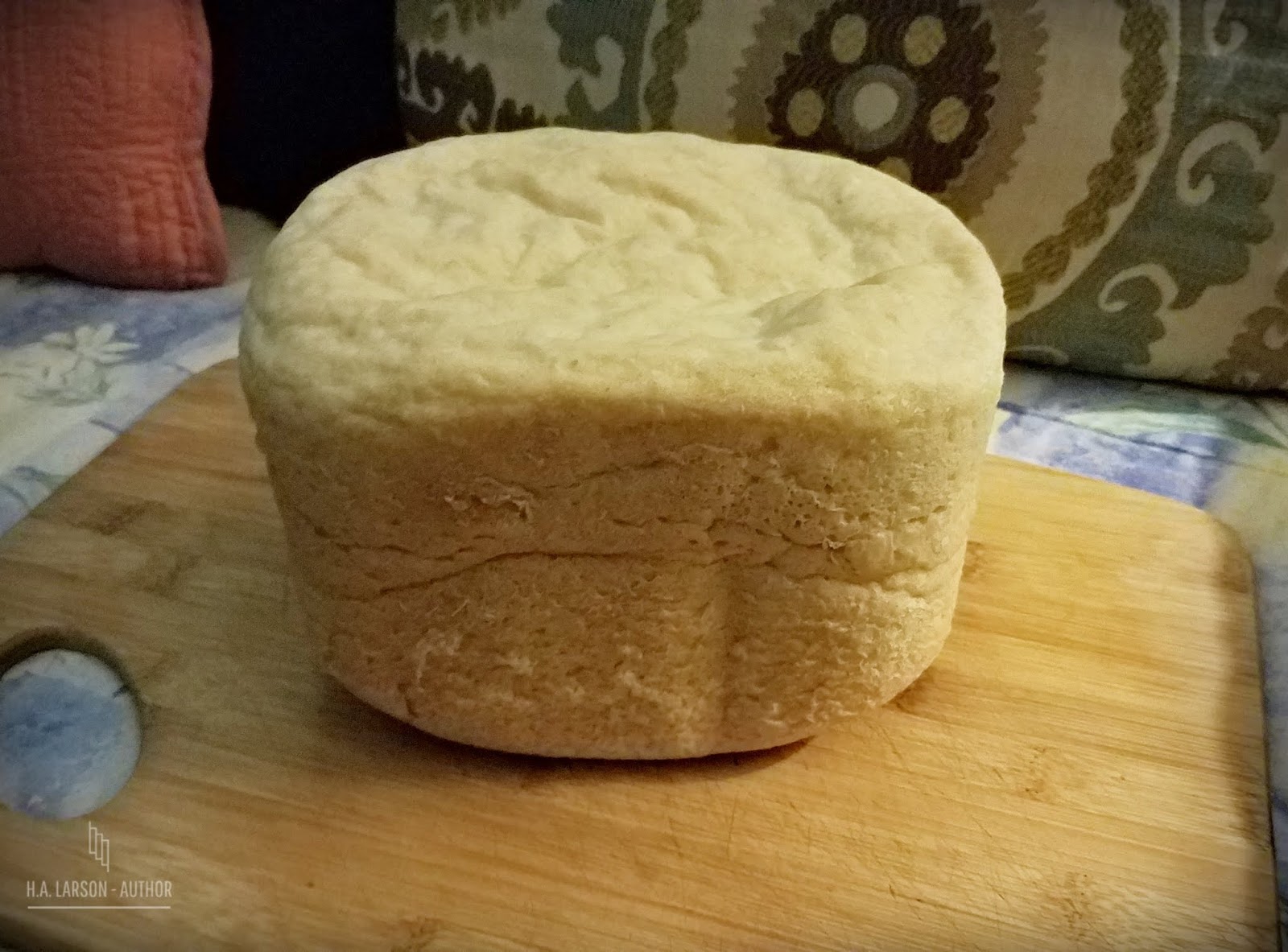 My actual homemade bread: Basic White Bread.There's nothing like a fresh loaf straight from the machine. Put some Earth Balance on that and eat while it's warm and the butter is melty. Mmm mmm!