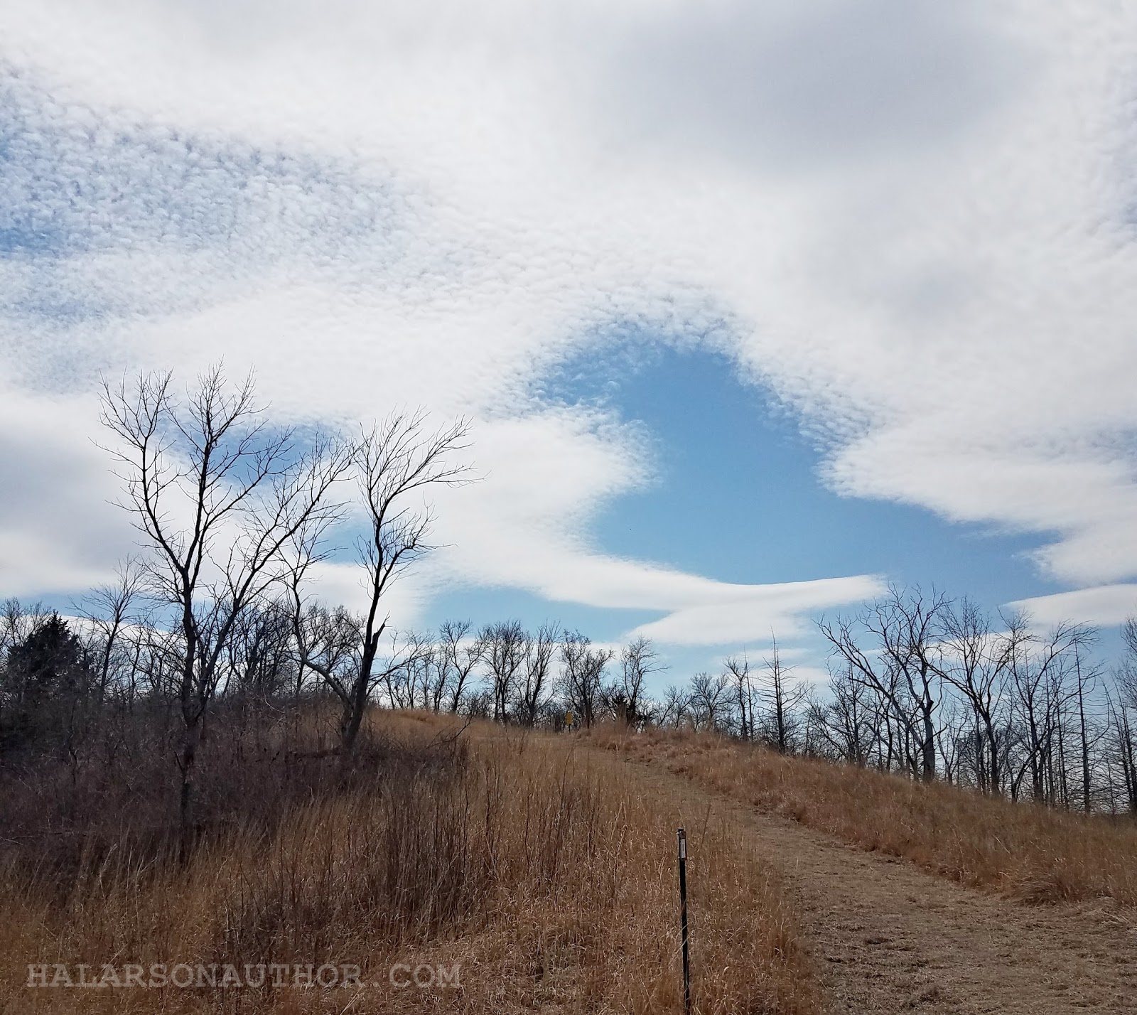 It was gorgeous and warm. The Sun poked through some of the most brilliant clouds I've ever seen. I walked the same path we did last time, except this time I went all the way around.