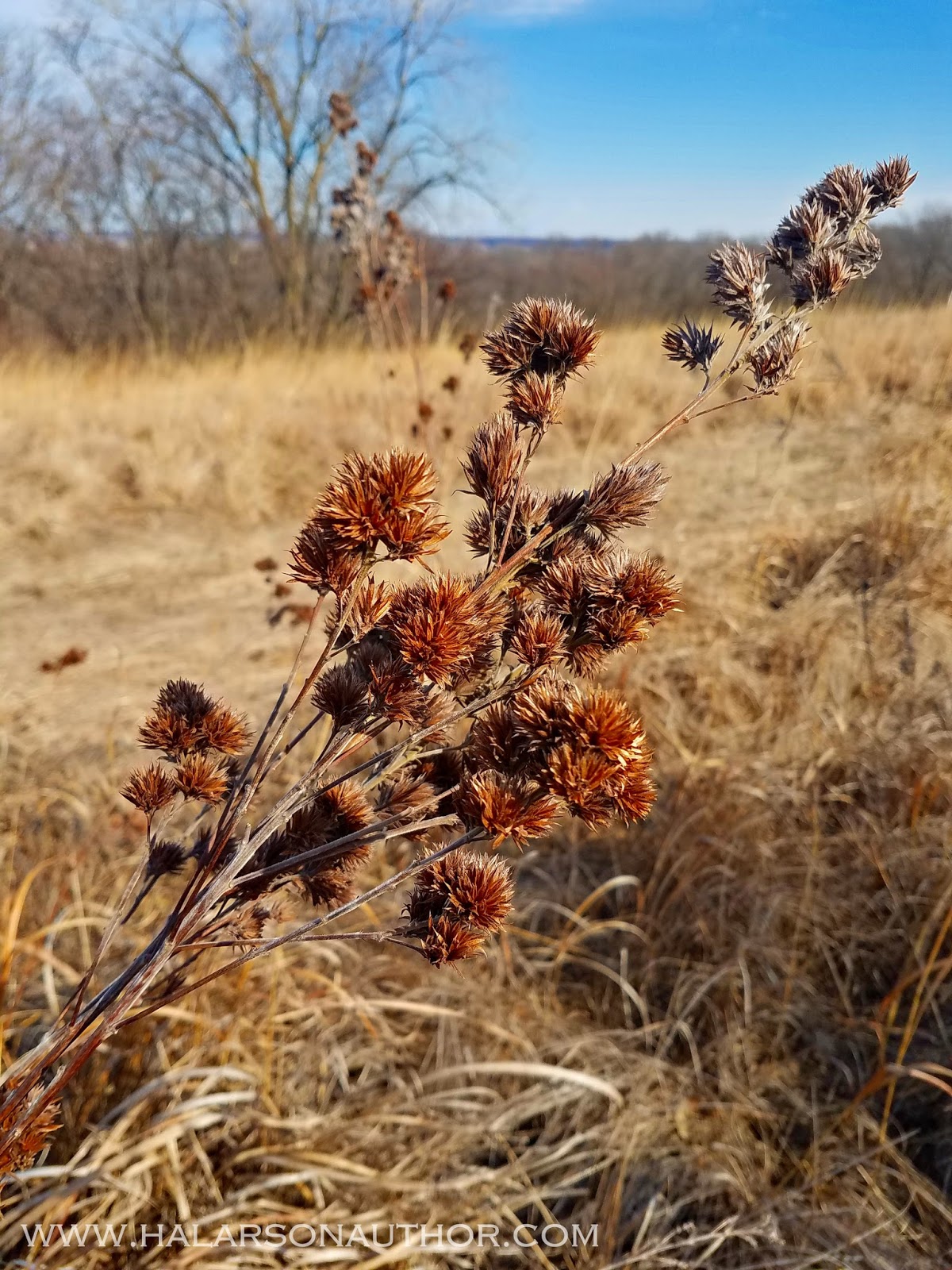 Round-headed bush clover.A recent trip to Neale Woods, albeit chilly, was exactly what I needed to break the seemingly never-ending Winter. Even from this vantage point in the Hills, you can see the Iowa Mountains in the background.