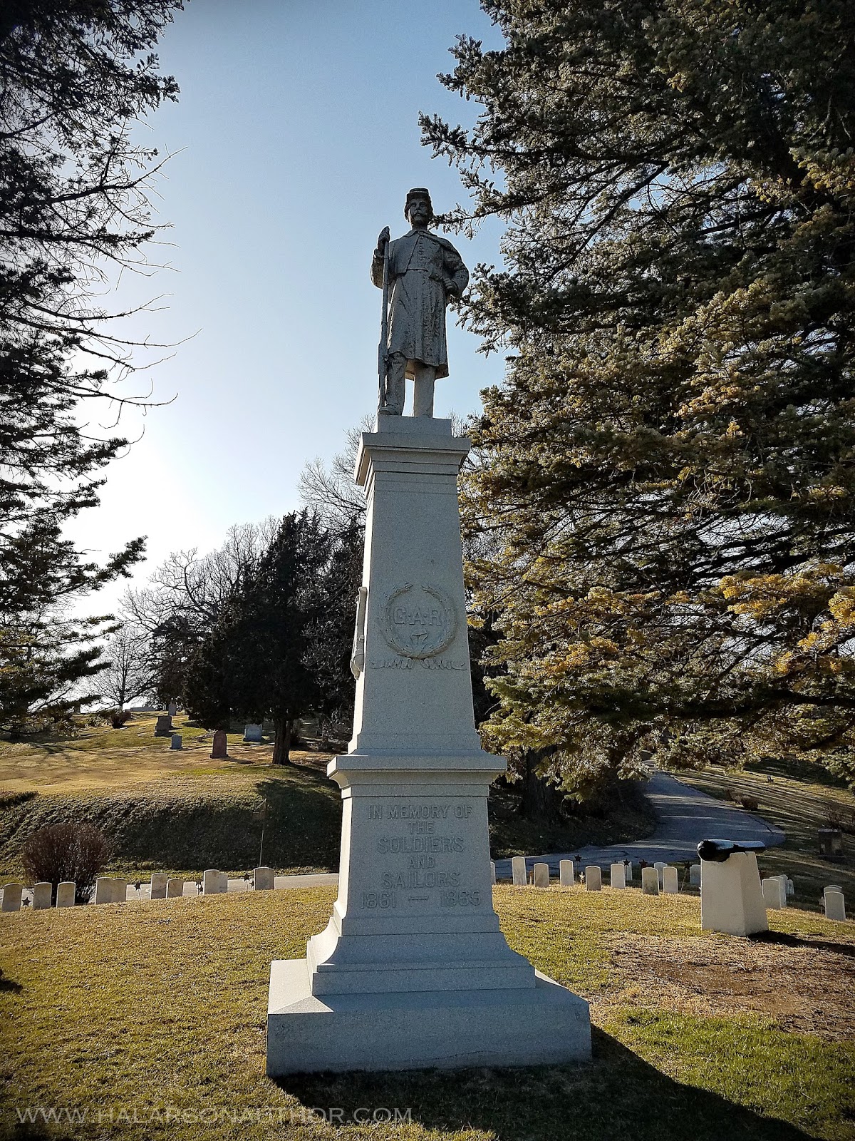 This section of the cemetery is dedicated to soldiers. This statue sits in the middle of a ring of soldiers graves and is surrounded by four fake cannons.