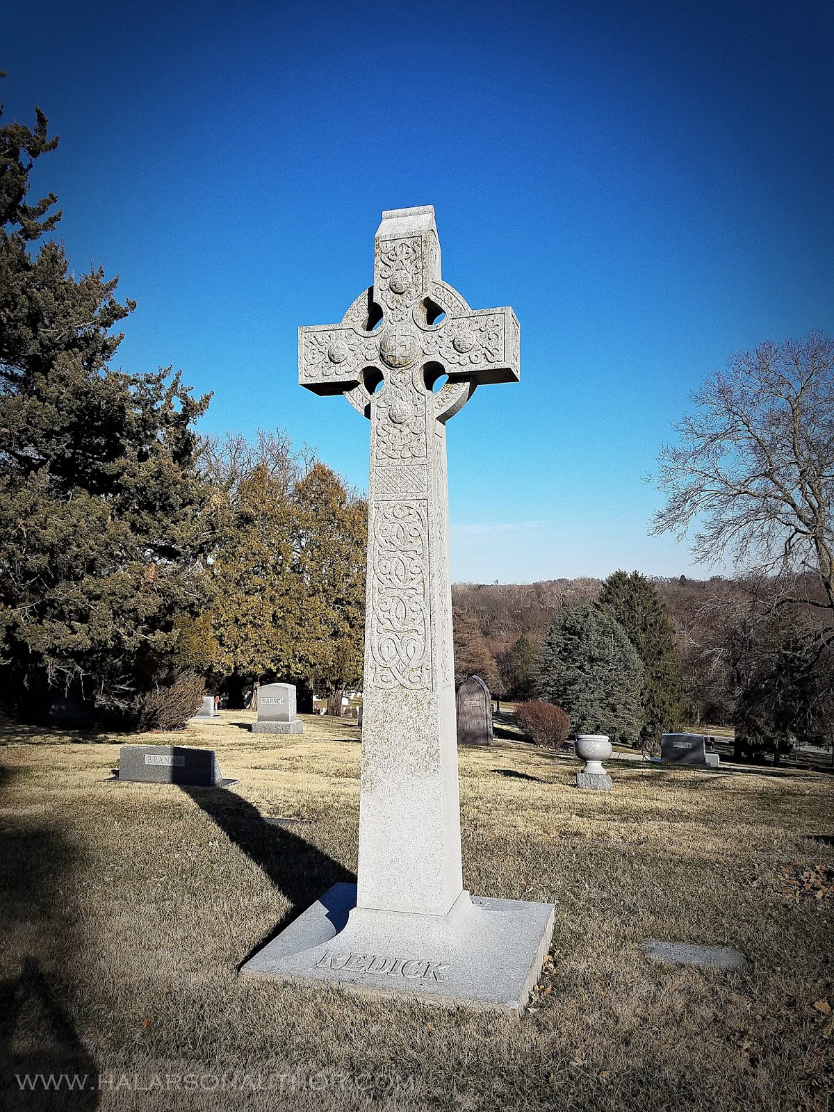 This Celtic cross monument marks a burial plot for the Redick Family. John I. Redick (D.O.D. April 2, 1906) was a prominent lawyer (once working for Union Pacific Railroad) and judge. He was the Chairman of the Nebraska Republican Delegation that nominated Abraham Lincoln and Andrew Johnson. A street in North Omaha is named after him.