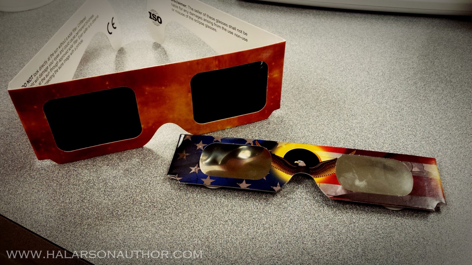 The eclipse glasses I got: the ones on the left for my husband and the ones on the right for me.