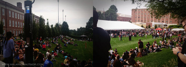 A couple of shots of all the people who congregated on campus, where I work, for the eclipse.
