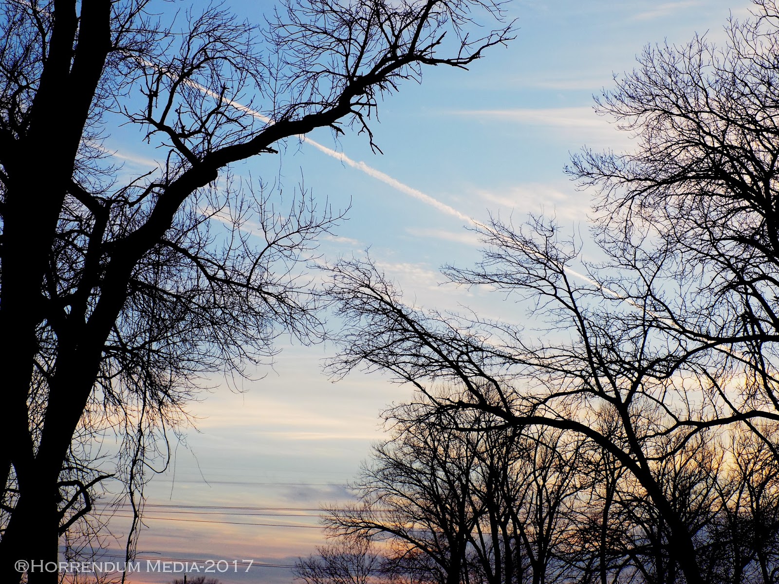 The early evening sky looking gorgeous. The Sun was just peeking out from some clouds, providing me with a good photo op.