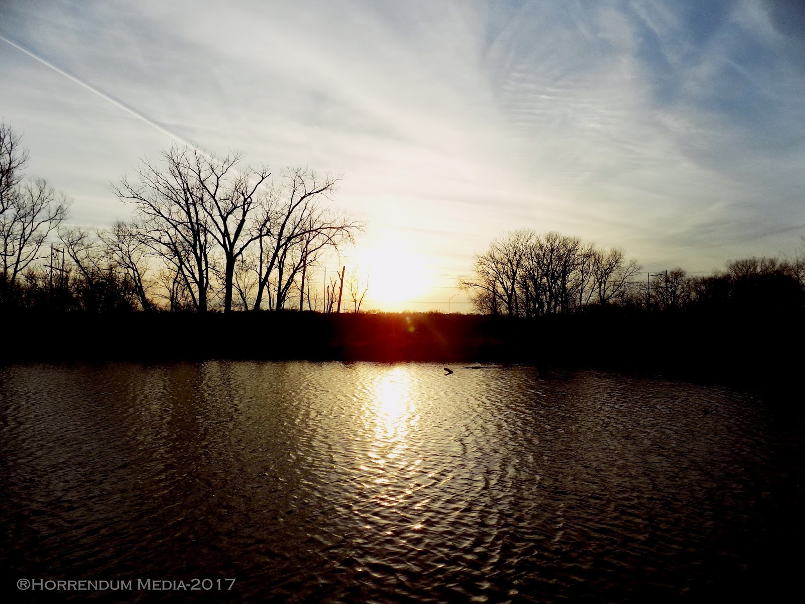 Wild Heron Haven (WHH) has a decent-sized pond for ducks, heron, and geese to visit or stay for awhile. The Sun is starting to set later and later, thankfully, and I captured this beautiful photo of it setting against the pond.