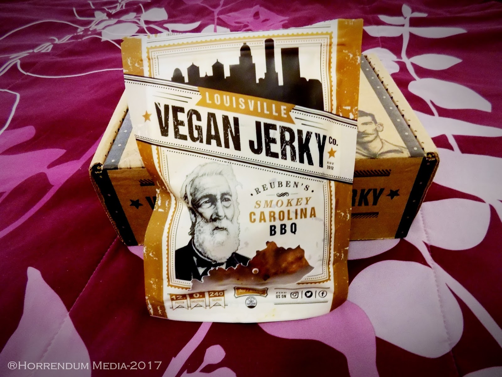 Good morning and Happy Monday! Another weekend has come and gone, and, man, was it beautiful. The weather was in the mid to high 60s all weekend, and we managed to get a lot of things done that needed to get done. We cleaned up the front and back yards, cleaned up the garage, and defrosted the deep freeze. It's nice to start getting ready for Spring and Summer. I have a post coming up on Wednesday about my weekend, so look for that. Today, however, is about my lastest Louisville Vegan Jerky subscription.