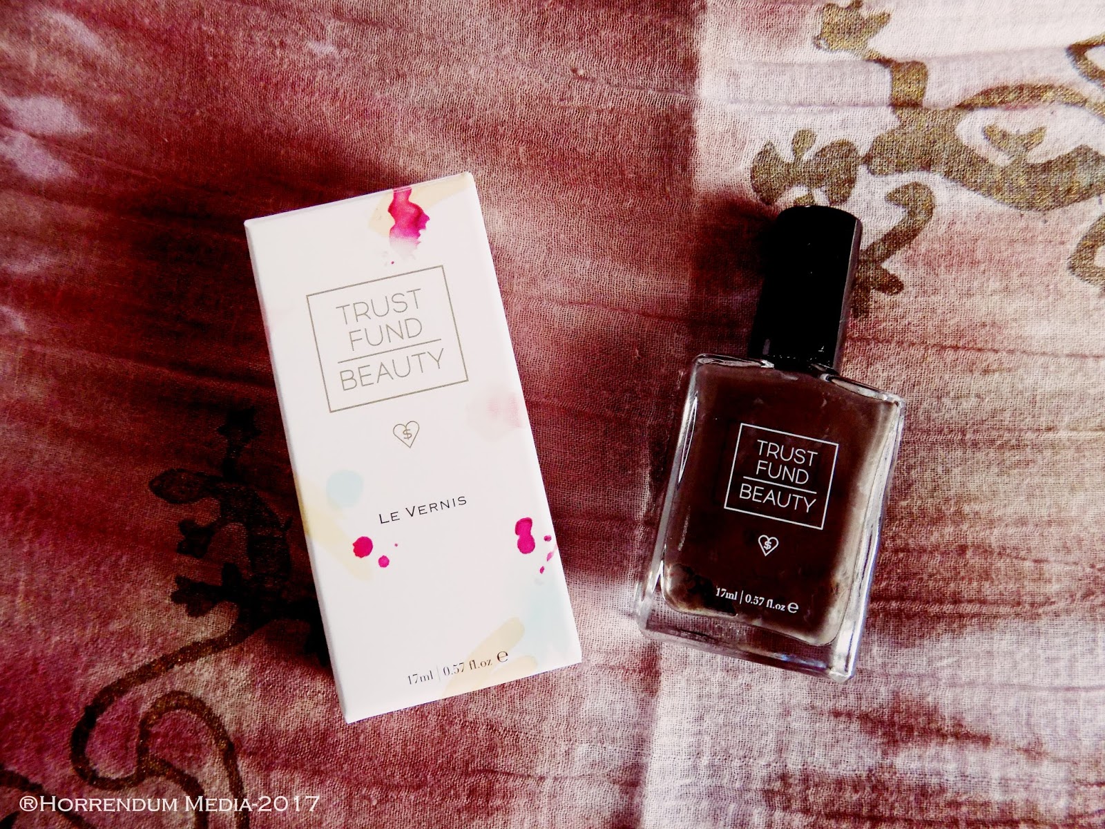 Another Trust Fund Beauty item. This one is the second fingernail polish I've received from them, this one in the color Latte. If that doesn't tip you off, I can tell you that it's a deep brown color, but not dirt brown. It's more of a light coffee color, hence the Latte name.