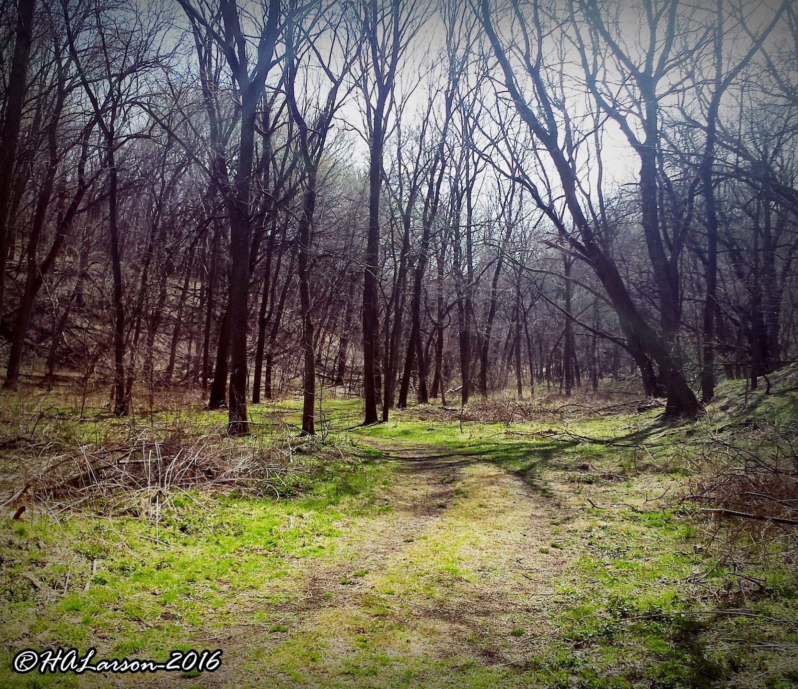 "Hidden Valley" trail is so named as it's hidden from sight on top of all the hills that surround it as it's nestled amongst a canopy of trees. The trees are just starting to bud, and, as you can see, the grass is returning to green.