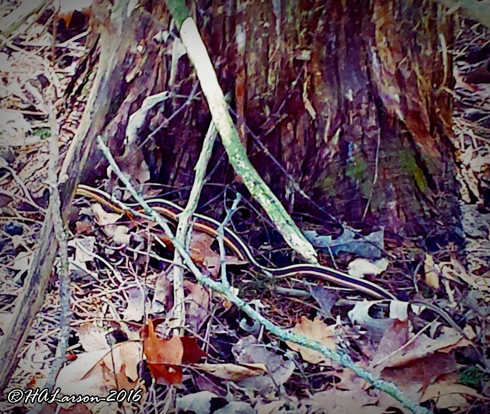 I was taking a picture of my reflection in the water when I inadvertently captured a picture of a swimming snake as well. He wasn't moving very fast though, so he was probably a bit on the cold side. Still, it was cool to get a picture of it...even if accidentally.