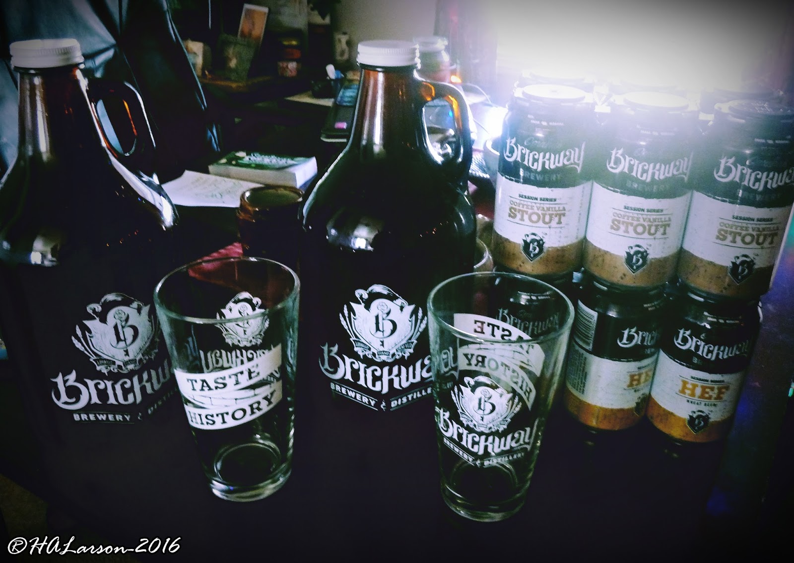 It was my husband's birthday recently, and I surprised him with a tour of the Brickway Brewery right here in Omaha, NE. The tour is short, but fantastic, and with your tour you get a beer of choice, the tour, a drink of whiskey (they distill spirits as well: vodka, whiskey, rum, and gin), a six-pack of their brews each, and a pint glass each. It was a bargain, and the beers were delicious. I had the Raspberry Hefeweizen, and a Chocolate Coffee Stout, both delicious. The whiskey was smooth and had nice back notes.